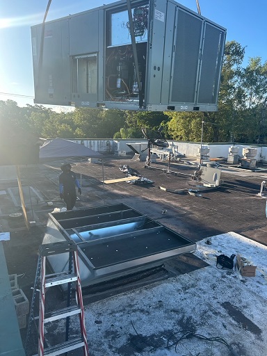 We recently wrapped up the replacement of a Trane package A/C unit with a curb adapter install. This project required close coordination with our partners at Tech Air for the ductwork and Hunter Merchant Crane for the heavy lifting.
